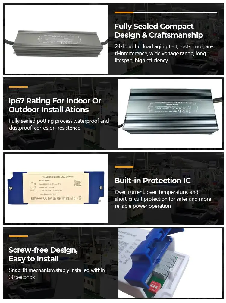 सटीक निरंतर वर्तमान · लंबे समय तक चलने वाला स्थायित्व: स्टारवेल निरंतर वर्तमान ट्राइक डिमेबल एलईडी ड्राइवर एक उच्च परिशुद्धता निरंतर वर्तमान चिप को अपनाता है। आउटपुट करंट त्रुटि ≤ ±3% है, आउटपुट करंट 1200mA पर स्थिर है, और झिलमिलाहट की गहराई <5% है, इस प्रकार झिलमिलाहट और प्रकाश क्षीणन की समस्याएं दूर हो जाती हैं। यह एलईडी प्रकाश जुड़नार की सेवा जीवन को 30% से अधिक बढ़ा सकता है, और इसका निरंतर कामकाजी जीवन 50,000 घंटे तक पहुंच सकता है, जिससे प्रतिस्थापन और रखरखाव की लागत में काफी कमी आती है।