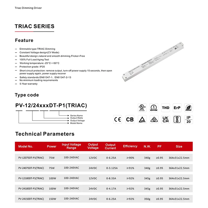स्टारवेल कॉन्स्टेंट वोल्टेज ट्राइक डिमेबल एलईडी ड्राइवर विशिष्टता: