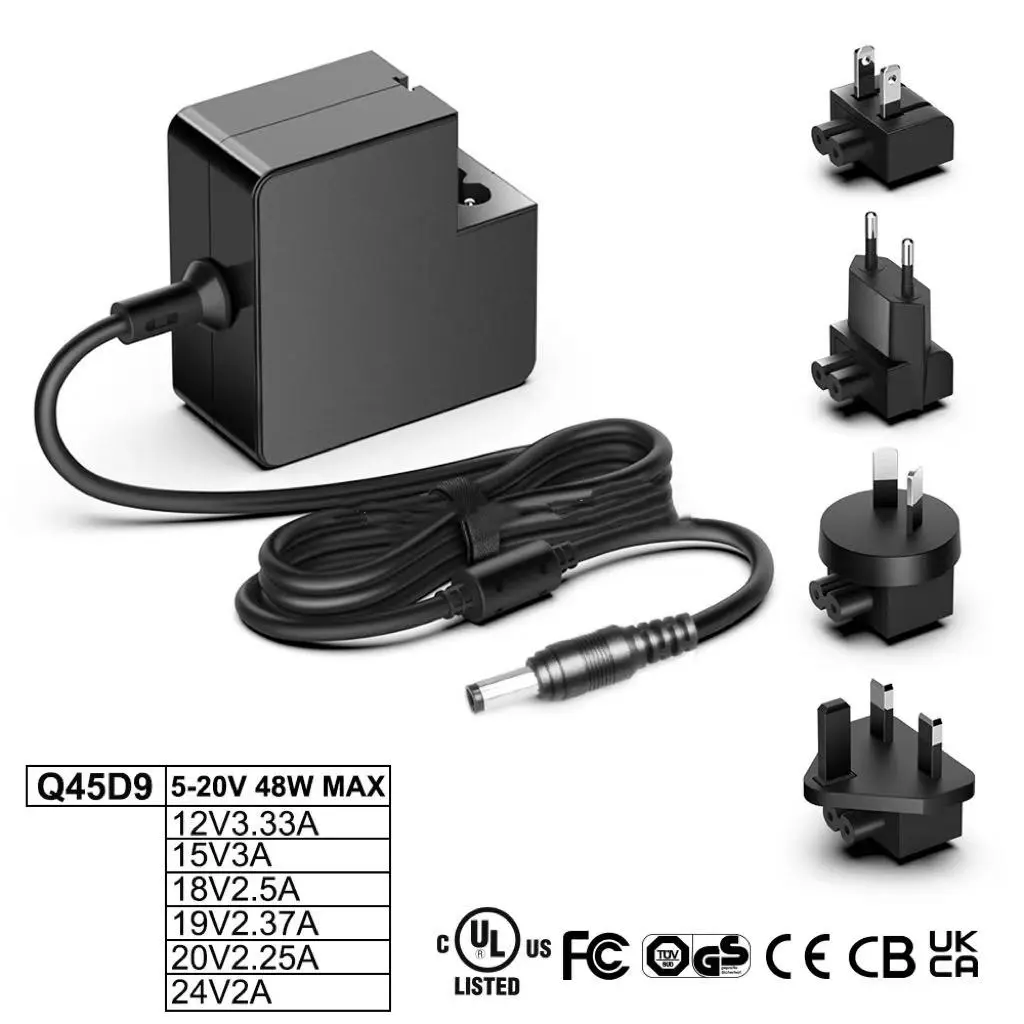 12वी/3.33ए, 15वी/3ए, 18वी/2.5ए, 19वी/2.37ए, 19वी/2.53ए, 20वी/2.25ए, 24वी/2ए |