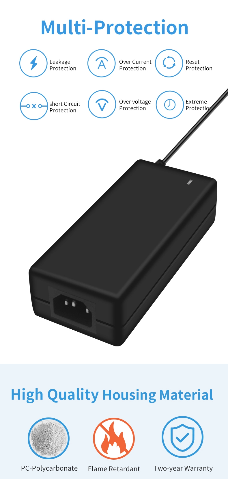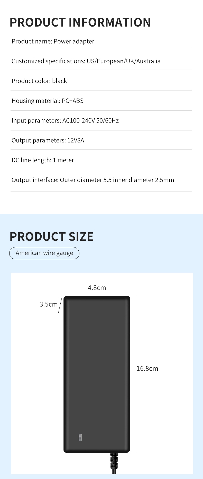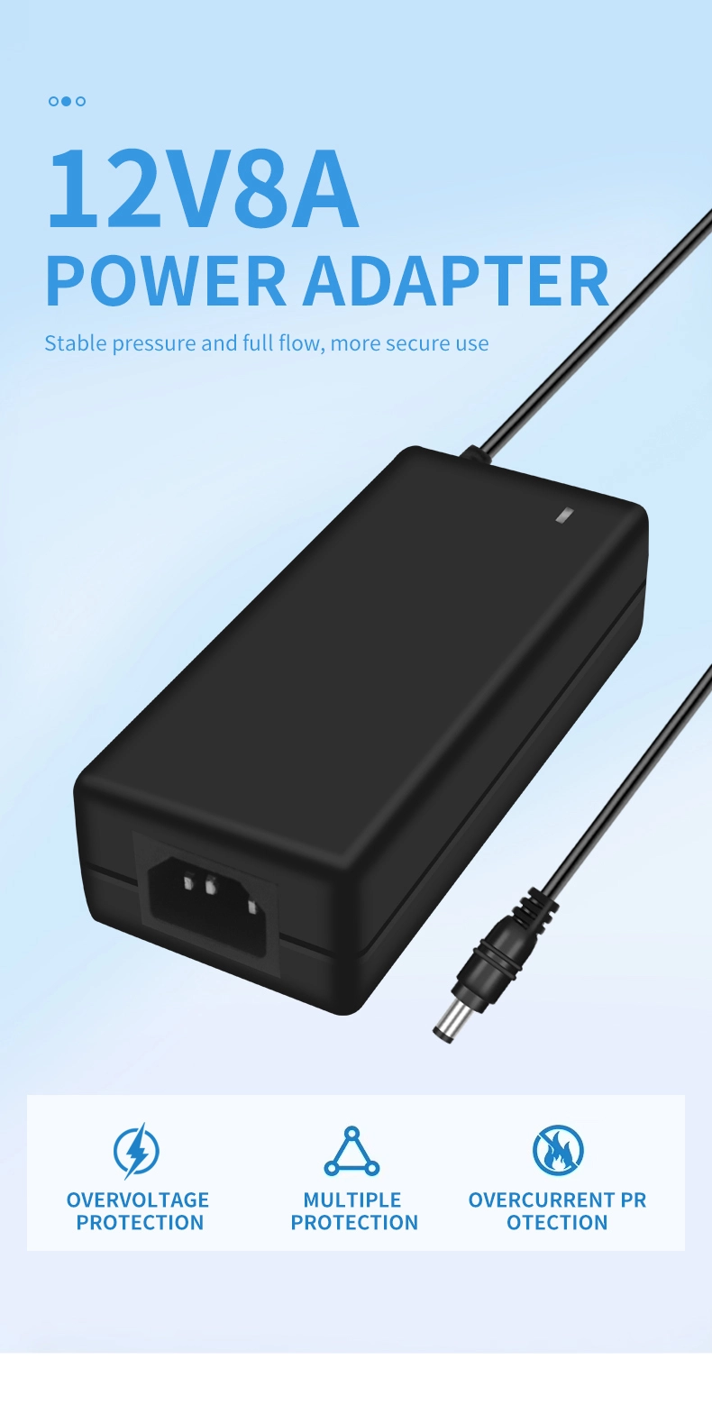 96W की रेटेड पावर के साथ, 96W पावर एडॉप्टर का आउटपुट करंट 8A के शिखर पर स्थिर हो जाता है, और वोल्टेज सटीकता ±5% (नो-लोड वोल्टेज: 12.1V; फुल-लोड वोल्टेज: 11.8V) के भीतर नियंत्रित होती है। यह कई उपकरणों (उदाहरण के लिए, 2 समानांतर 48W डिवाइस) की एक साथ बिजली आपूर्ति आवश्यकताओं को पूरा कर सकता है। शुद्ध कॉपर कोर आउटपुट केबल ≤0.3V का वोल्टेज ड्रॉप सुनिश्चित करता है, जो उच्च-वर्तमान ट्रांसमिशन के दौरान निर्बाध प्रदर्शन बनाए रखता है।