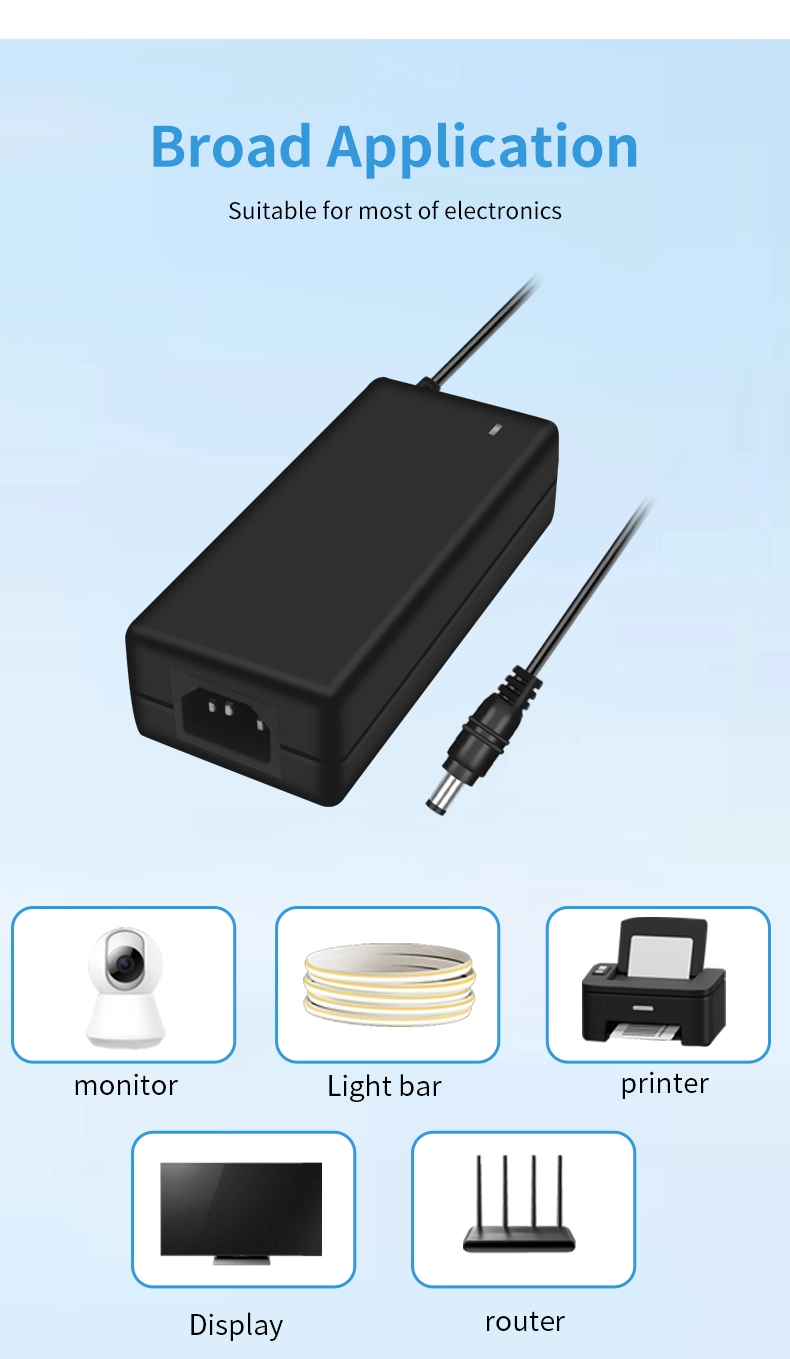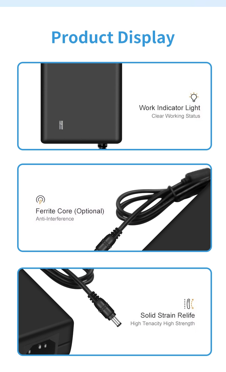 AC 100-240V वाइड वोल्टेज इनपुट दुनिया भर के 100 से अधिक देशों में पावर ग्रिड के साथ संगत है। 1.5 मीटर विस्तारित आउटपुट केबल (1.0 मिमी² व्यास) को 180° घूमने योग्य डीसी कनेक्टर के साथ जोड़ा गया है जो विभिन्न इंस्टॉलेशन परिदृश्यों के अनुकूल है। केवल 120×60×30 मिमी के कॉम्पैक्ट आकार के साथ, यह समान शक्ति के पारंपरिक एडेप्टर से 35% छोटा है, इसका वजन केवल 280 ग्राम है - पोर्टेबिलिटी में 50% सुधार होता है।