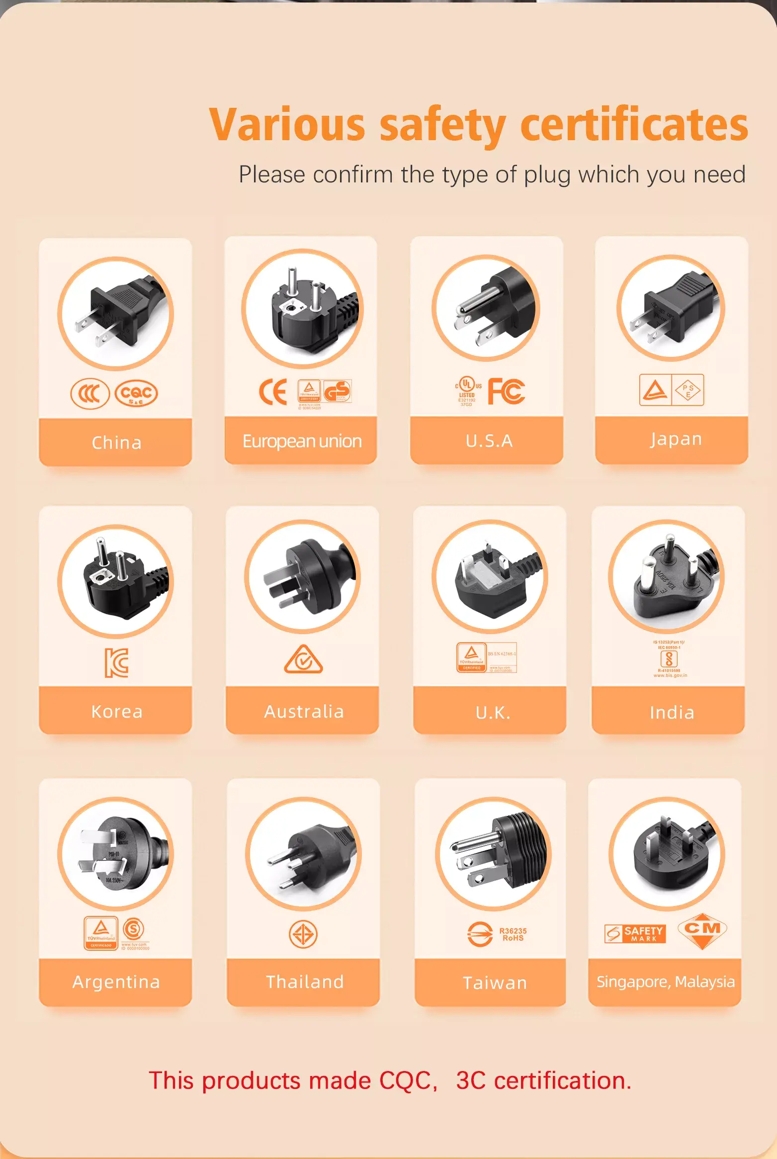 सुरक्षा सुरक्षा: एडॉप्टर और कनेक्टेड डिवाइस दोनों को नुकसान से बचाने के लिए ओवर-वोल्टेज, ओवर-करंट और शॉर्ट-सर्किट सुरक्षा तंत्र से लैस।