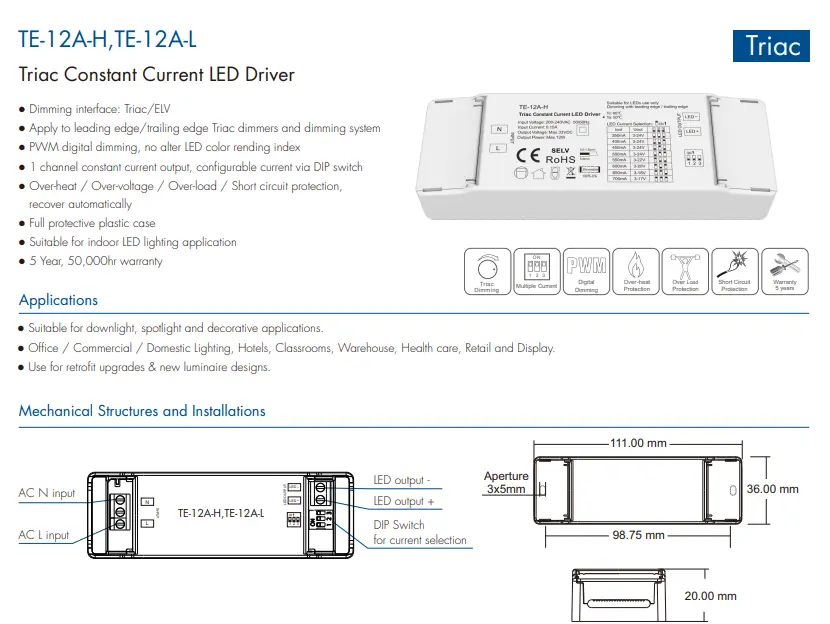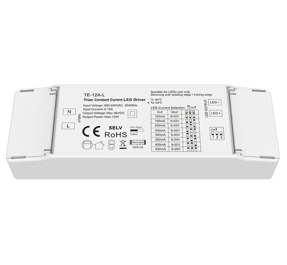 स्टारवेल उच्च गुणवत्ता वाला 12W निरंतर वर्तमान ट्राइक डिमिंग एलईडी ड्राइवर ओवरवॉल्टेज, ओवरकरंट और शॉर्ट-सर्किट संरक्षण कार्यों को एकीकृत करता है, और कई अंतरराष्ट्रीय ऊर्जा दक्षता और सुरक्षा मानकों को पूरा करते हुए उच्च शक्ति कारक और कम हार्मोनिक विरूपण की सुविधा देता है। इसका कॉम्पैक्ट डिज़ाइन इसे स्थापित करना आसान बनाता है और विभिन्न इनडोर लाइटिंग परिदृश्यों जैसे डाउनलाइट्स, स्पॉटलाइट्स और सजावटी लाइट्स के लिए उपयुक्त है, जो इसे ऊर्जा-बचत नवीकरण और स्मार्ट लाइटिंग अनुप्रयोगों के लिए एक आदर्श ड्राइवर समाधान बनाता है। उत्पादविशेषताएँ: