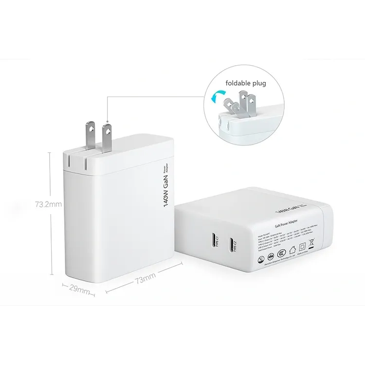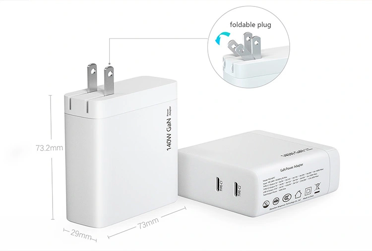 140W डुअल यूएसबी सी पोर्ट पीडी चार्जर यूएस प्लग फोल्डेबल विशिष्टता: