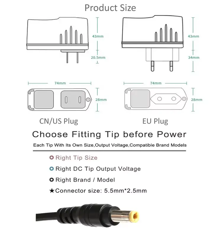 एसी प्लग: यूएस/ईयू/एयू/यूके/सीएन/जेपी प्लग विनिमेय