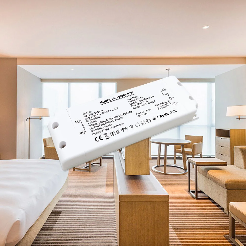 व्यावसायिक डिमिंग समाधान: 30W निरंतर वोल्टेज ट्राईक/0-10V डुअल-मोड डिमेबल एलईडी ड्राइवर