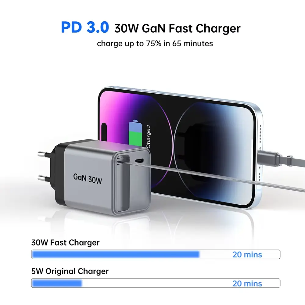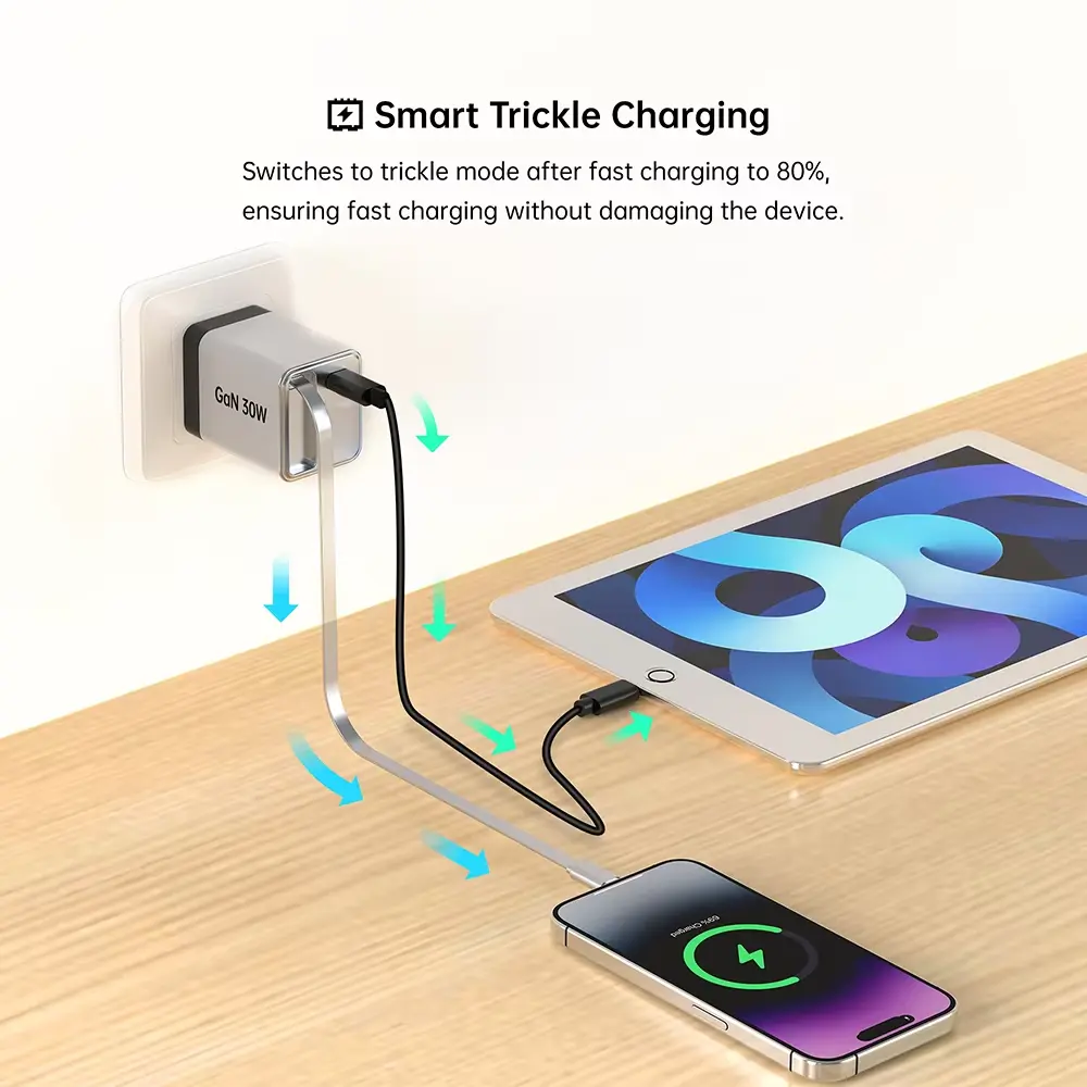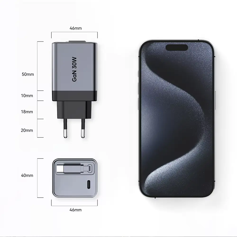 रिट्रैक्टेबल टाइप सी केबल के साथ 30W क्विक चार्जर का अल्ट्रा-लाइटवेट, पॉकेट-आकार का डिज़ाइन इसे चारों ओर ले जाना आसान बनाता है। यह घर, कार्यालय या यात्रा के लिए एकदम सही विकल्प है।
