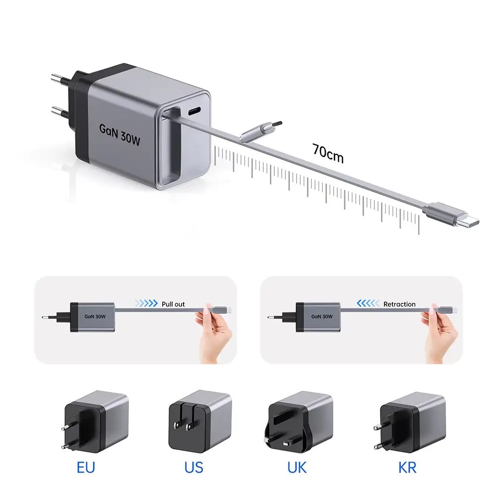 उत्पाद का नाम: 30W GaN PD स्ट्रेचेबल केबल फास्ट चार्जर |