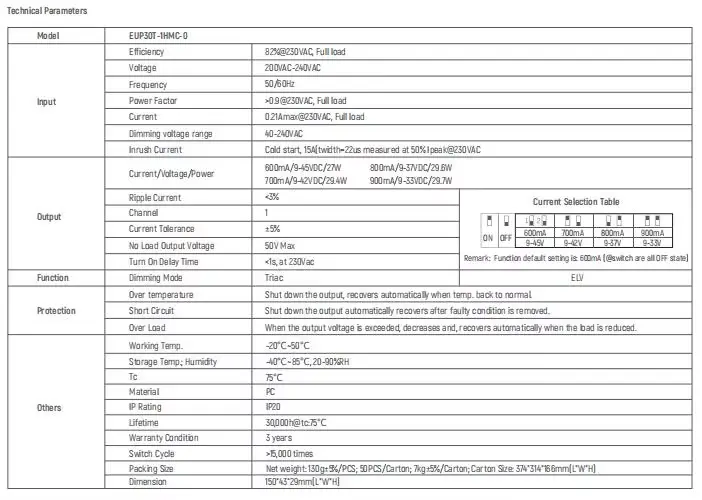 चीन में एलईडी ड्राइवर के एक पेशेवर निर्माता और आपूर्तिकर्ता के रूप में, हमारा 30W ट्राइक डिमिंग एलईडी ड्राइवर कॉन्स्टेंट करंट एक बिजली रूपांतरण उपकरण है जो विशेष रूप से मध्यम से उच्च शक्ति एलईडी प्रकाश प्रणालियों के लिए डिज़ाइन किया गया है। यह रेटेड करंट पर एलईडी मोतियों के स्थिर संचालन को सुनिश्चित करने, लैंप के जीवनकाल को प्रभावी ढंग से बढ़ाने और प्रकाश दक्षता की स्थिरता में सुधार करने के लिए उन्नत निरंतर वर्तमान नियंत्रण तकनीक को अपनाता है। निरंतर चालू डिमिंग एलईडी ड्राइवर व्यावसायिक प्रकाश व्यवस्था, औद्योगिक प्रकाश व्यवस्था, आउटडोर फ्लडलाइट और पौधों की वृद्धि रोशनी जैसे उच्च मांग वाले प्रकाश परिदृश्यों के लिए उपयुक्त है।