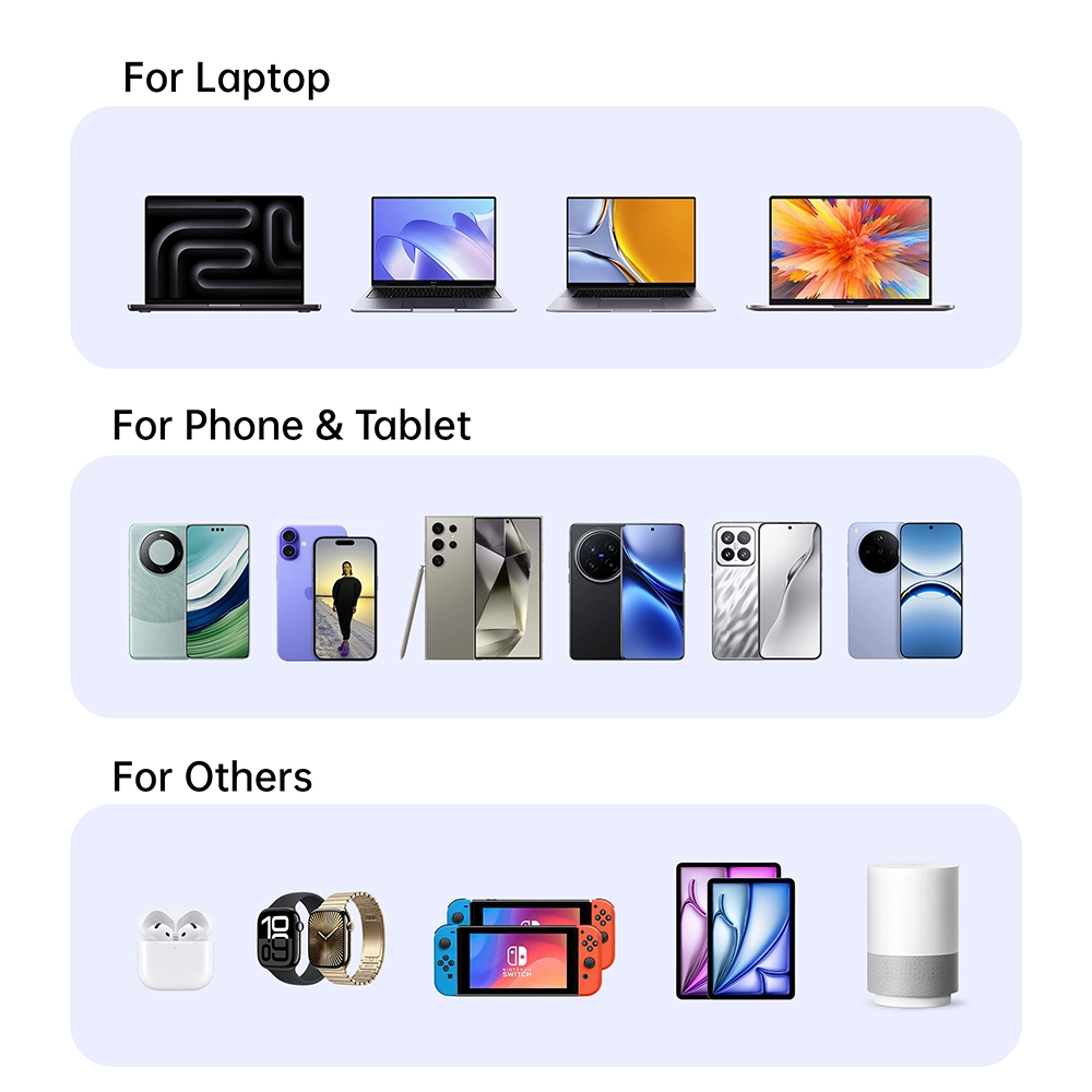 सार्वभौमिक अनुकूलता: हमारा पीडी चार्जर पावर डिलीवरी (पीडी) तकनीक से लैस है, जो इसे स्मार्टफोन, टैबलेट और यहां तक कि कुछ लैपटॉप सहित उपकरणों की एक विस्तृत श्रृंखला के साथ संगत बनाता है। यह आपके सभी गैजेट के लिए सर्वोत्तम चार्जिंग समाधान है।