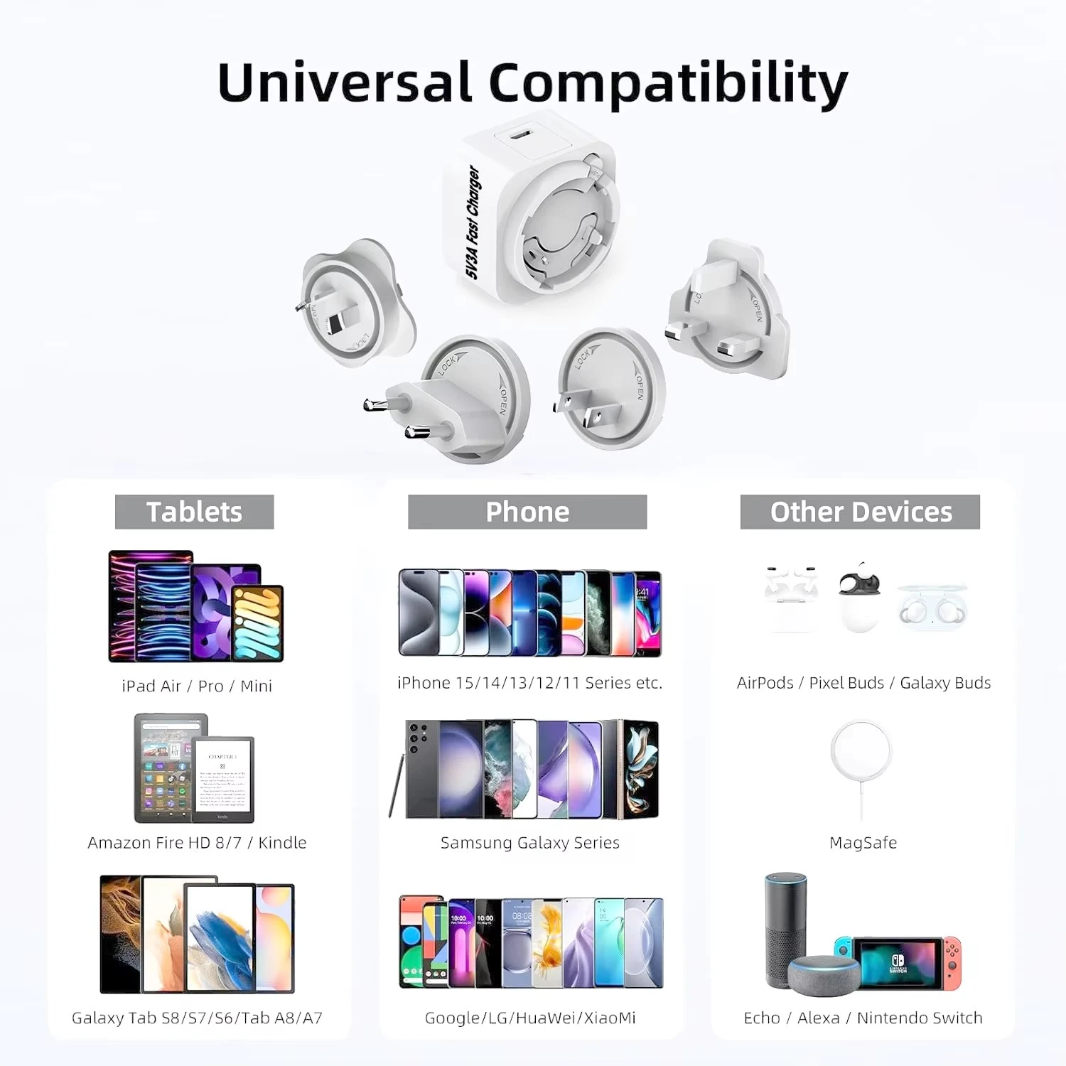 स्मार्टफोन, टैबलेट, पोर्टेबल स्पीकर और अन्य इलेक्ट्रॉनिक्स को पावर देने के लिए आदर्श, यह एडाप्टर एक कॉम्पैक्ट समाधान में गति, सुरक्षा और वैश्विक बहुमुखी प्रतिभा को जोड़ता है।