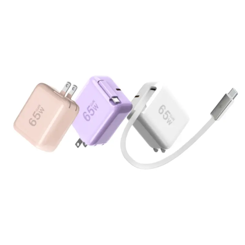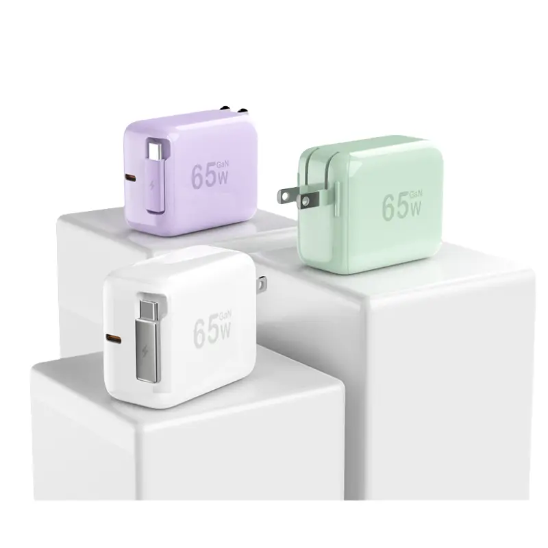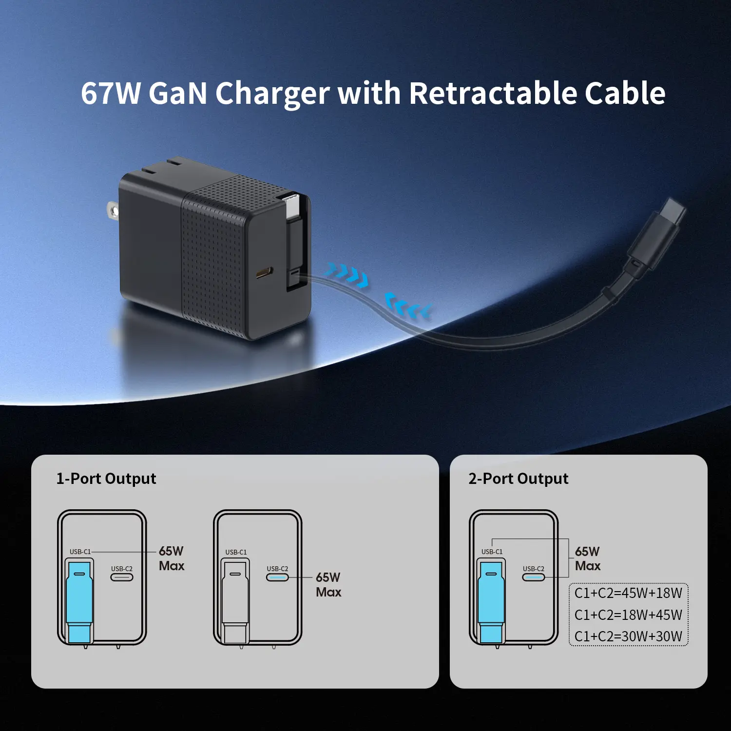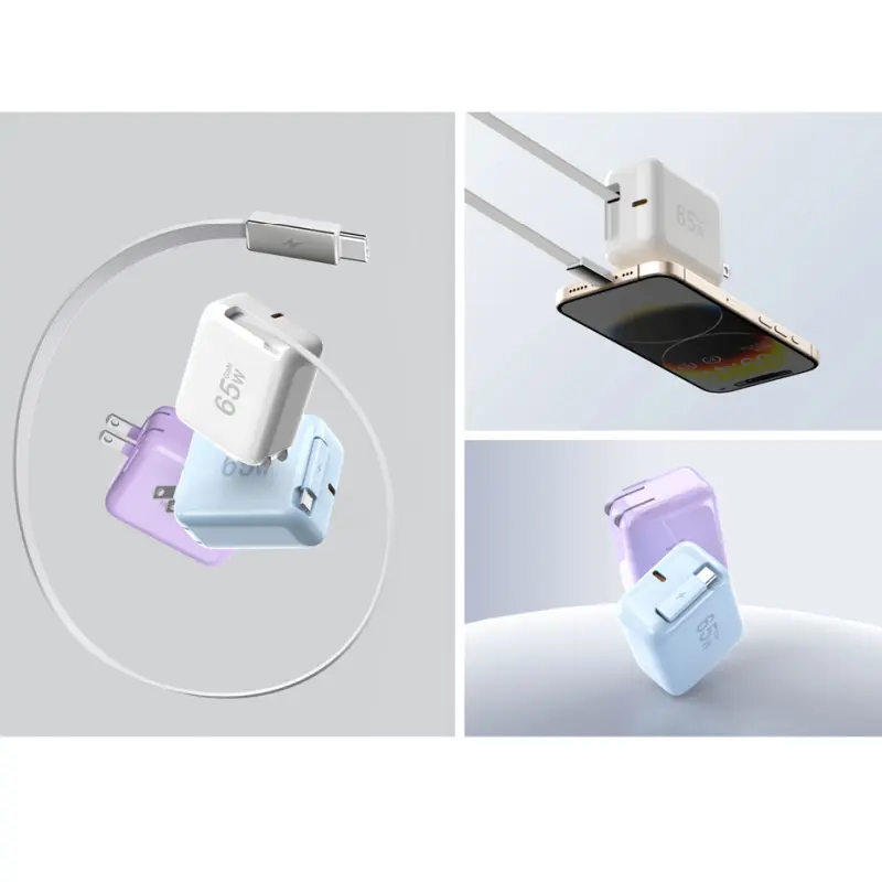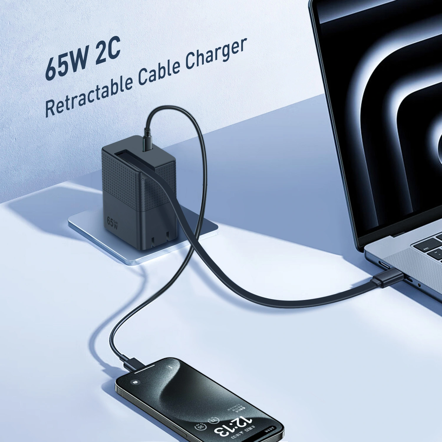 ट्रैक्टेबल यूएसबी सी केबल के साथ 65W पीडी चार्जर |