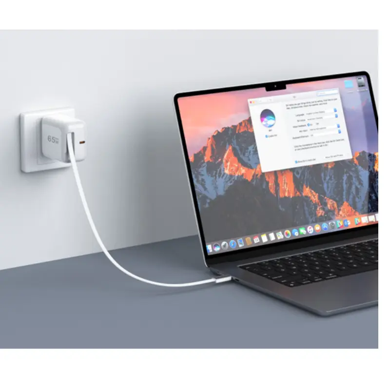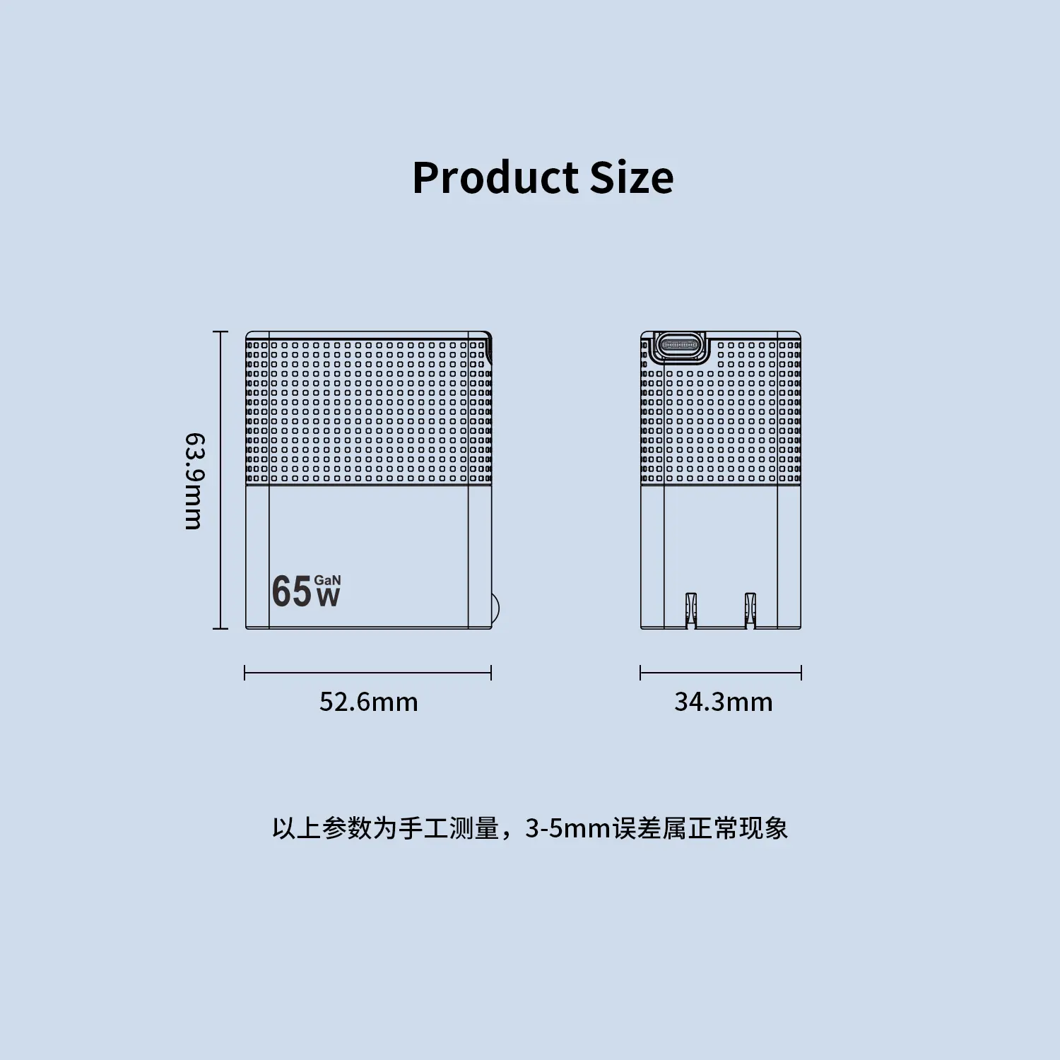 डुअल यूएसबी-सी पोर्ट: 65W PD 3.0 चार्जर एक साथ दो डिवाइस को चार्ज कर सकता है। दो चार्जिंग प्रक्रिया के दौरान, बिजली 45W और 20W के रूप में आवंटित की जाती है।