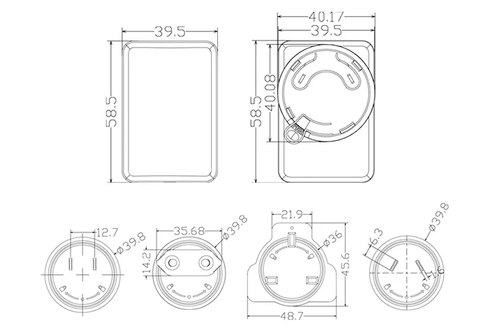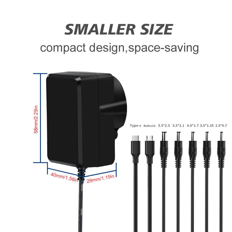 12V 24V इंटरचेंजेबल प्लग पावर सप्लाई एडाप्टर आयाम (मिमी):