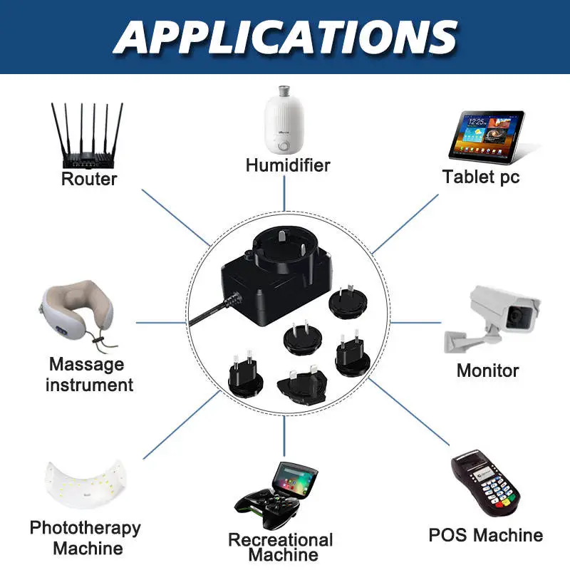 स्टारवेल उच्च गुणवत्ता वाले इंटरचेंजेबल प्लग पावर सप्लाई एडाप्टर एक बहुमुखी और पोर्टेबल डिवाइस है जिसे दीवार के आउटलेट से एसी (अल्टरनेटिंग करंट) मुख्य बिजली को इलेक्ट्रॉनिक उपकरणों की एक विस्तृत श्रृंखला के लिए आवश्यक स्थिर, कम वोल्टेज डीसी (डायरेक्ट करंट) पावर में परिवर्तित करने के लिए डिज़ाइन किया गया है। इसकी परिभाषित विशेषता अलग करने योग्य और विनिमेय प्लग (अक्सर "एसी प्लग" या "इनपुट ब्लेड" कहा जाता है) का एक सेट है जो विभिन्न अंतरराष्ट्रीय सॉकेट मानकों के अनुरूप है।