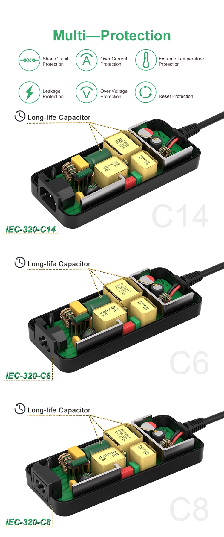 * 200W श्रृंखला के लिए अधिक इकाइयाँ: 5V/8V/9V/12V/13.5V/15V/18V/19V/24V/25V/30V/36V/29V/30V/42V/48V उपलब्ध * सुरक्षा: ओसीपी/ओवीपी/ओटीपी, एससीपी, स्वचालित ओवरलोड कट-ऑफ, ओवर वोल्टेज कट-ऑफ, स्वचालित थर्मल कट-ऑफ। * व्यापक अनुकूलताएं: एलईडी स्ट्रिप लाइट्स, 3डी प्रिंटर, हैम रेडियो ट्रांसीवर, सीसीटीवी कैमरे, कार सबवूफर amp, ऑडियो एम्पलीफायर, वायरलेस राउटर, एडीएसएल कैट्स, ह्यूमिडिफायर, हब, कीबोर्ड, बीटी स्पीकर, मॉनिटर, वेबकैम, डीवीआर, एनवीआर, ऑडियो/वीडियो पावर सप्लाई