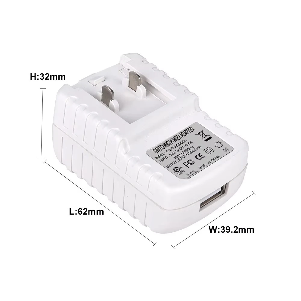 विनिमेय एसी प्लग के साथ 5वी 2ए यूनिवर्सल यूएसबी ए पोर्ट चार्जर पावर एडाप्टर |